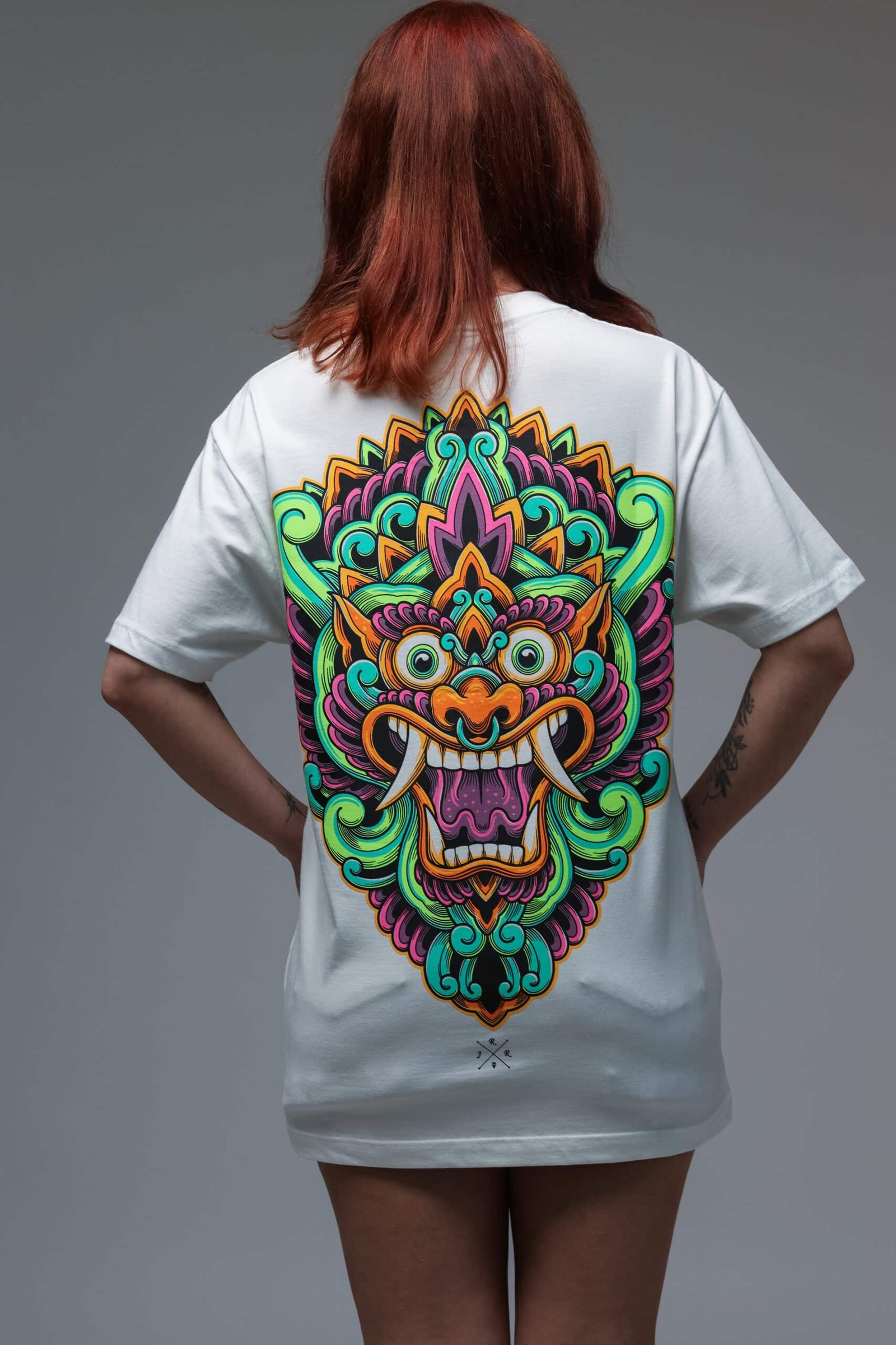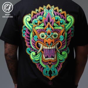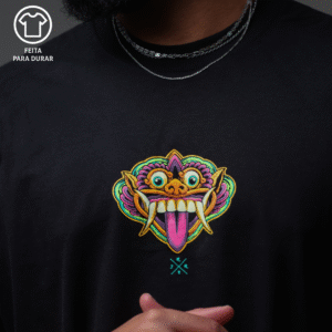 Estampa feita em serigrafia silk-screen, técnica clássica que garante alta definição, cores vivas e acabamento resistente.