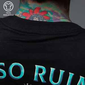 Estampa feita em serigrafia silk-screen, técnica clássica que garante alta definição, cores vivas e acabamento resistente.