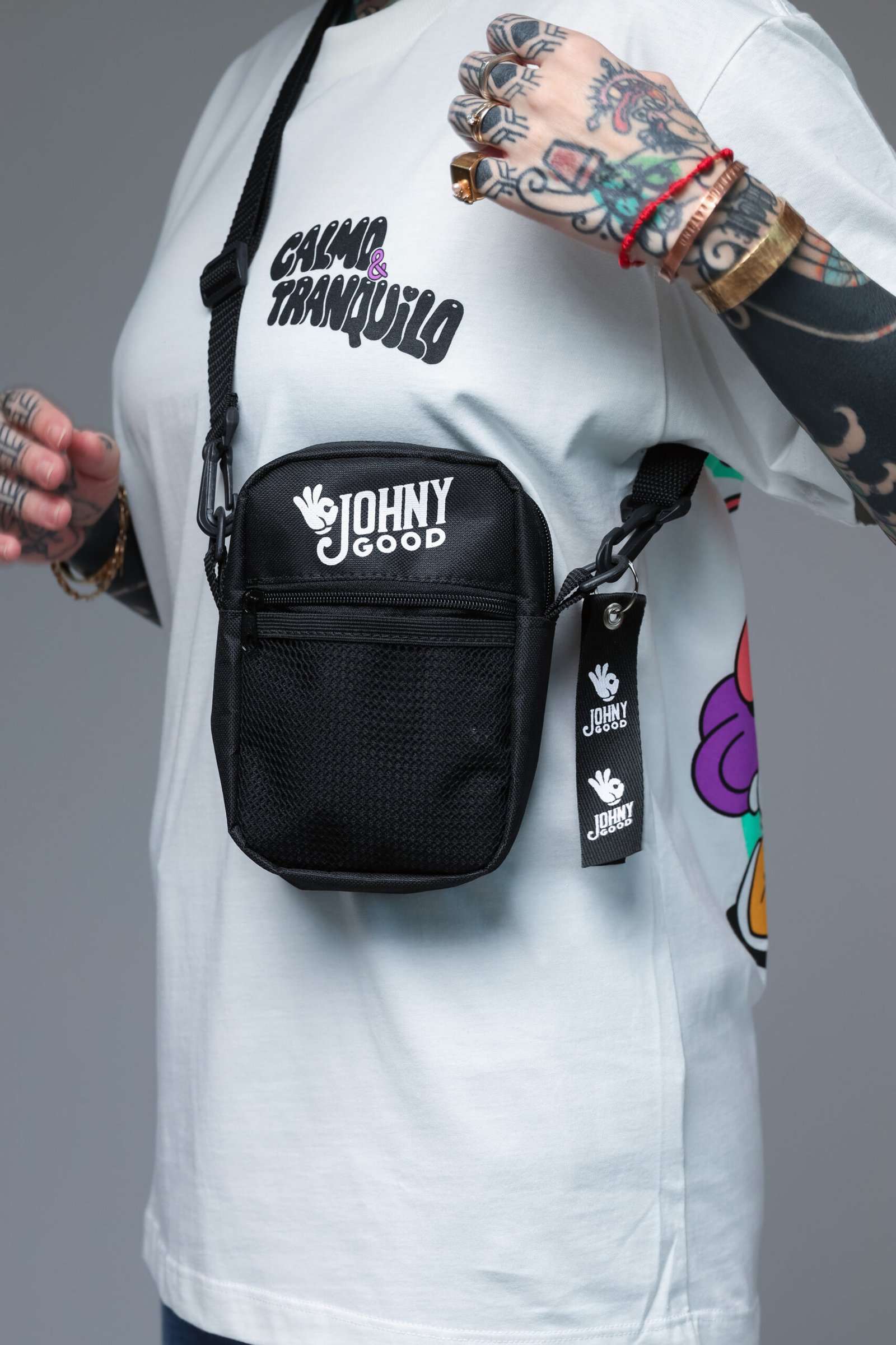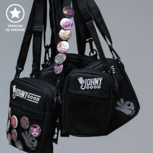 A menor da linha, mas não subestime, ela é compacta pra quem precisa levar o essencial. Toda forrada pra aguentar o rolê! Conta com bolso externo com zíper e mais um bolso telado pra deixar tudo a mão. A alça é regulável e acompanha bottom e chaveiro personalizado, pra você usar nela ou onde preferir!